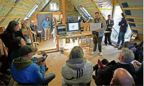 Wie das Innenleben des Viertelhauses künftig aussehen könnte, darüber haben sich Studierende der Akademie für Handwerksdesign der Handwerkskammer Aachen auf Gut Rosenberg Gedanken gemacht. Im Rahmen ihres Seminars „Entwurf“ im fünften Semester entwickelten sie zahlreiche Gestaltungsideen für das Gebäude. Entstanden sind Entwürfe für Möbel, Hocker, Bänke, eine Küche, Geländer und weitere Gestaltungselemente – einige davon wurden bereits als Prototypen gefertigt.